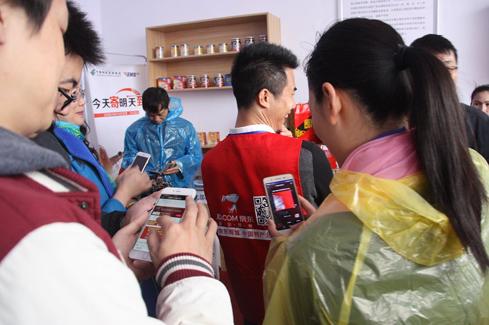電商谷展區(qū)熱鬧非凡(與會(huì)嘉賓在電商谷體驗(yàn)京東北海館購(gòu)物)